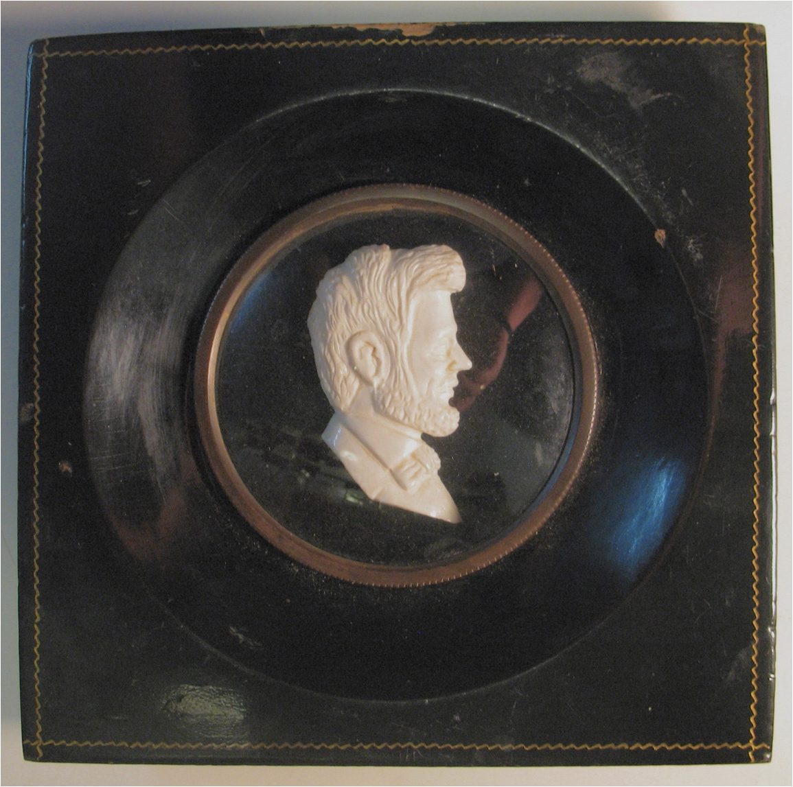Carved ivory profile, 37 x 51 mm., encased in glass-windowed wooden frame, 160 x 156 mm.