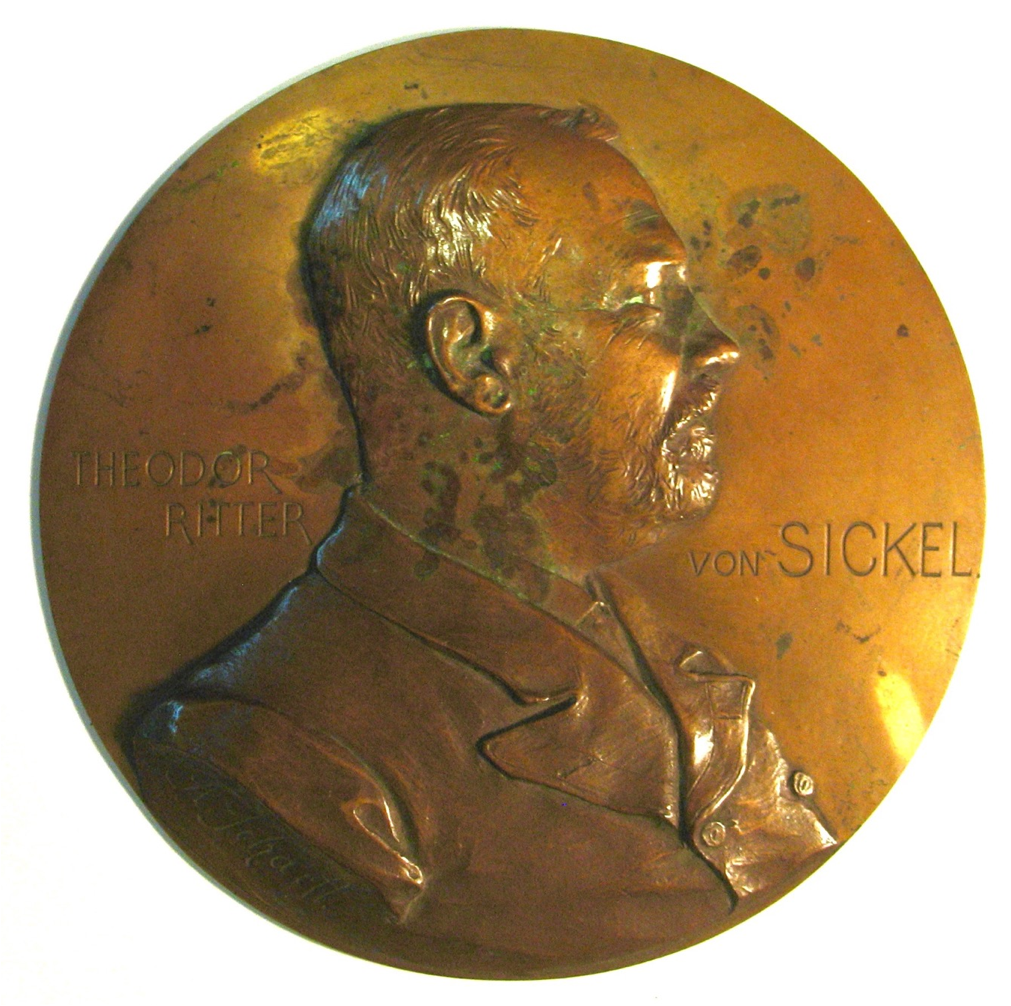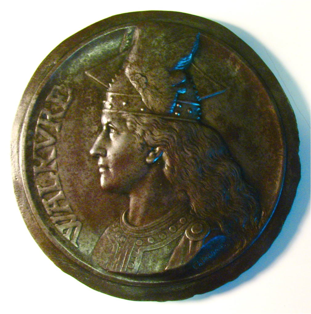 By Anton Scharff, 1887, cast bronze, 144 mm. Used as the obverse for a medal for thirty years as a professor at the University of Vienna.